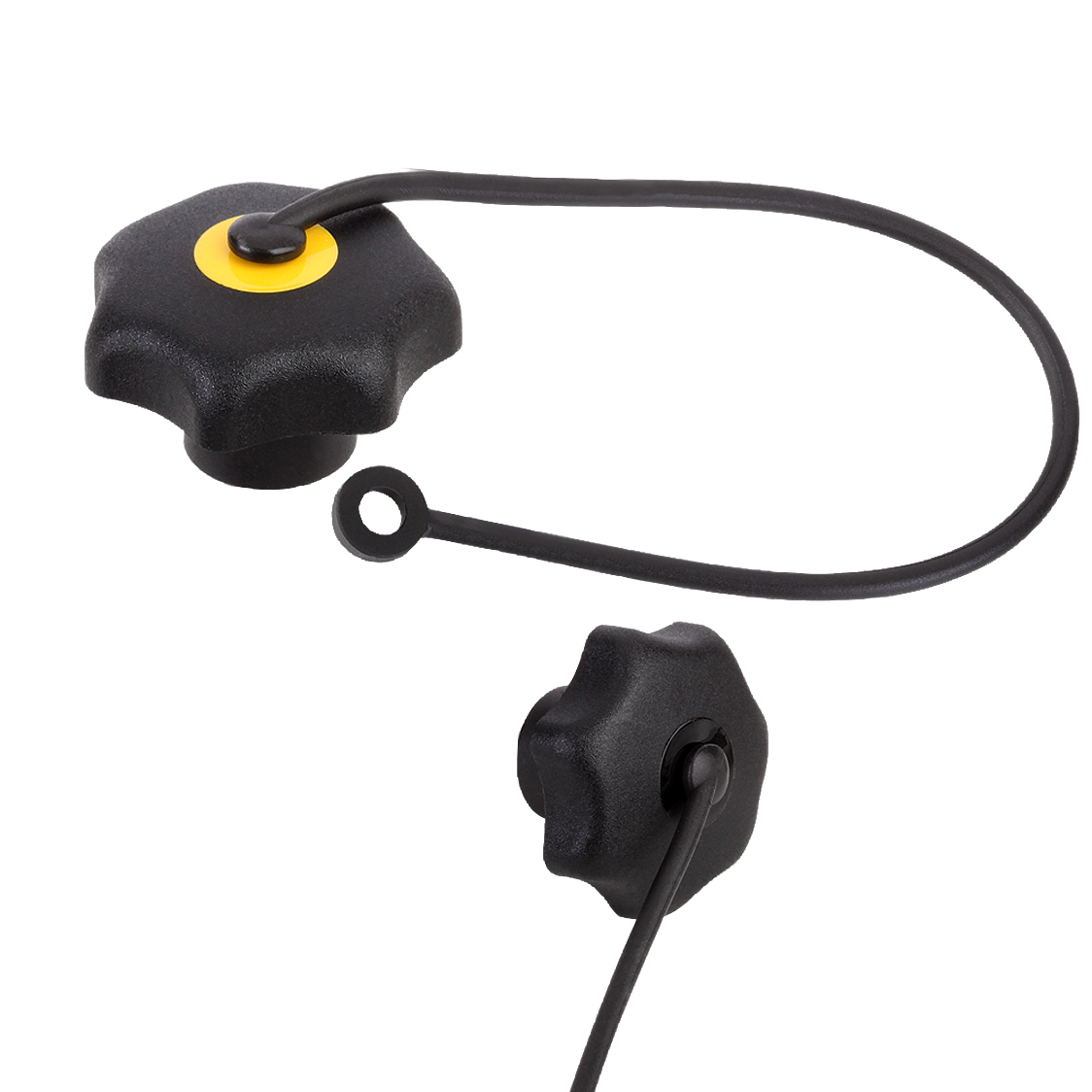 Durch das Sicherungsband kann der Sterngriff unverlierbar an einem Grundkörper befestigt werden.