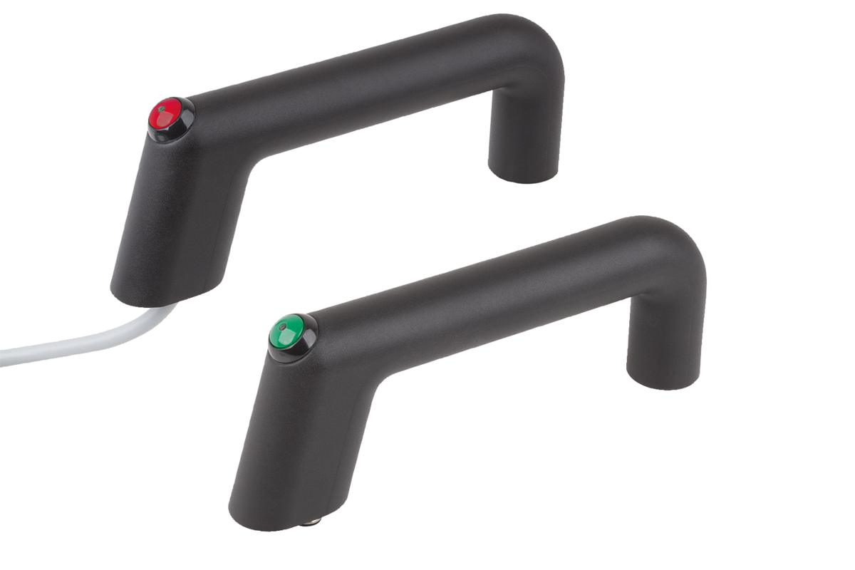 Bügelgriffe Kunststoff mit elektrischer Schaltfunktion und einem Drucktaster mit Stecker