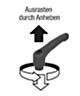 Der Griffhebel ist mittels Zahnkranz im unbetätigten Zustand im Verzahnungseinsatz eingerastet, dadurch kann das Gewinde befestigt oder gelöst werden. Durch Anheben des Griffhebels kann dieser in der Position umgesetzt und per Federkraft wieder im Zahnkranz eingerastet werden.
