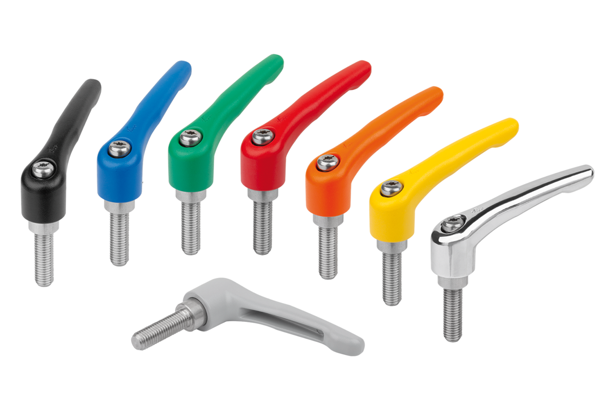 Klemmhebel mit Außengewinde, Stahlteile aus Edelstahl, strukturmatt