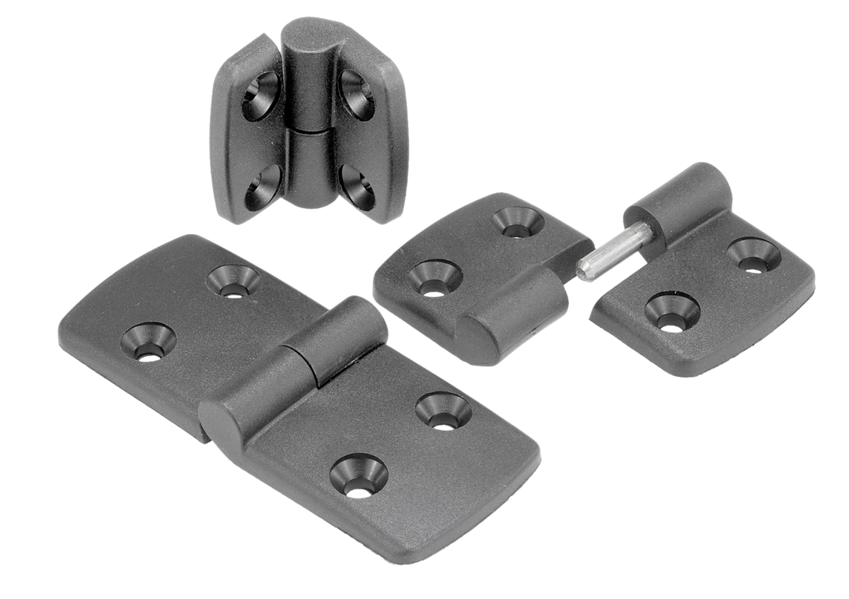 Alle Scharniere können auf Anfrage auch mit Führungsnasen für die Nuten von Aluminiumprofilen (Nut 6, 8 und 10) geliefert werden. Sie erleichtern die Montage, sichern das Scharnier gegen Verdrehen und machen es belastbarer.