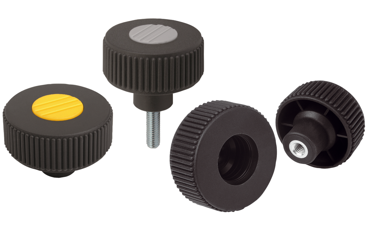 Rändelräder Form K, mit Gewindebuchse, mit Deckel
